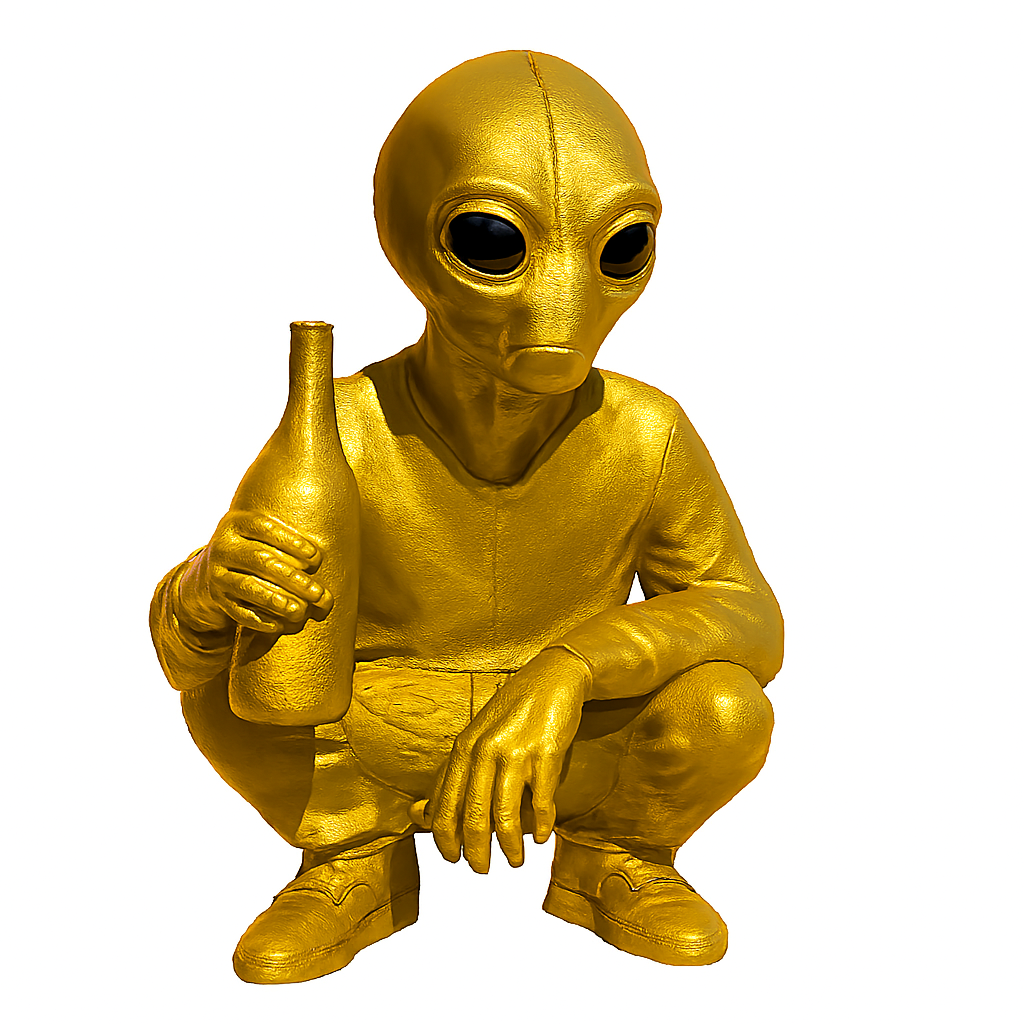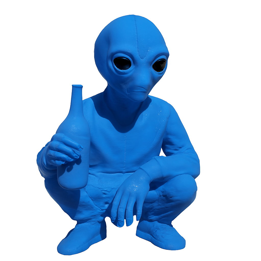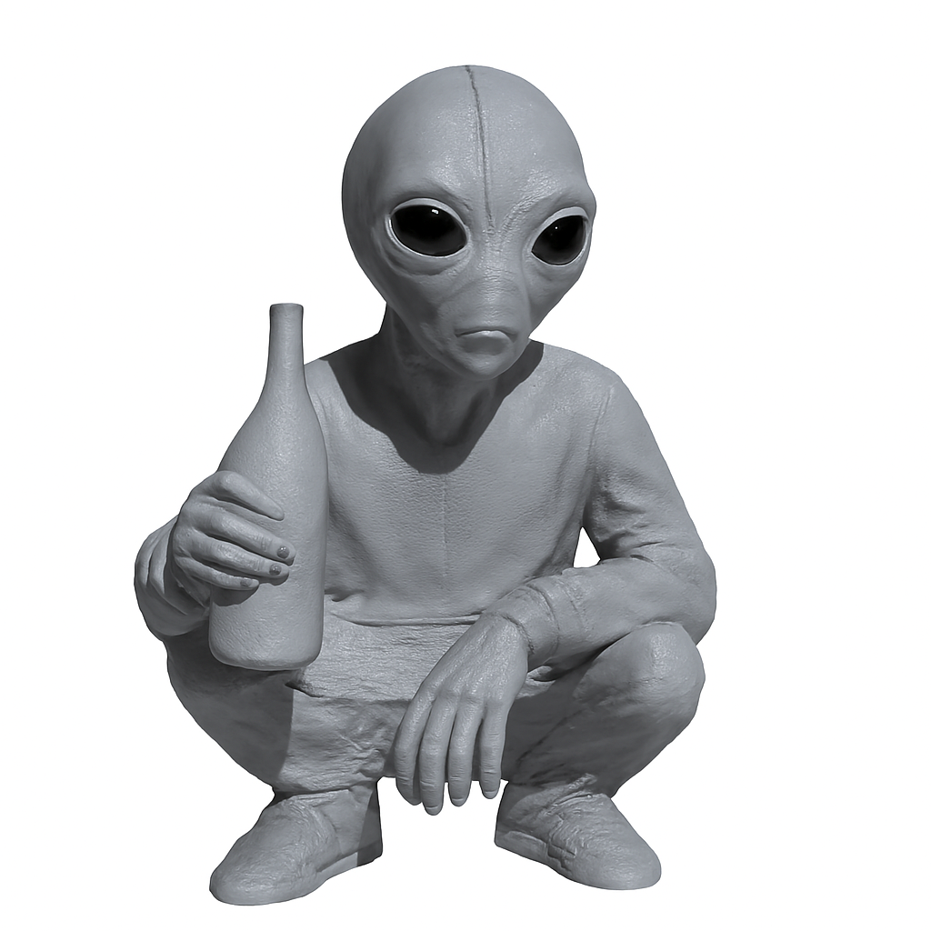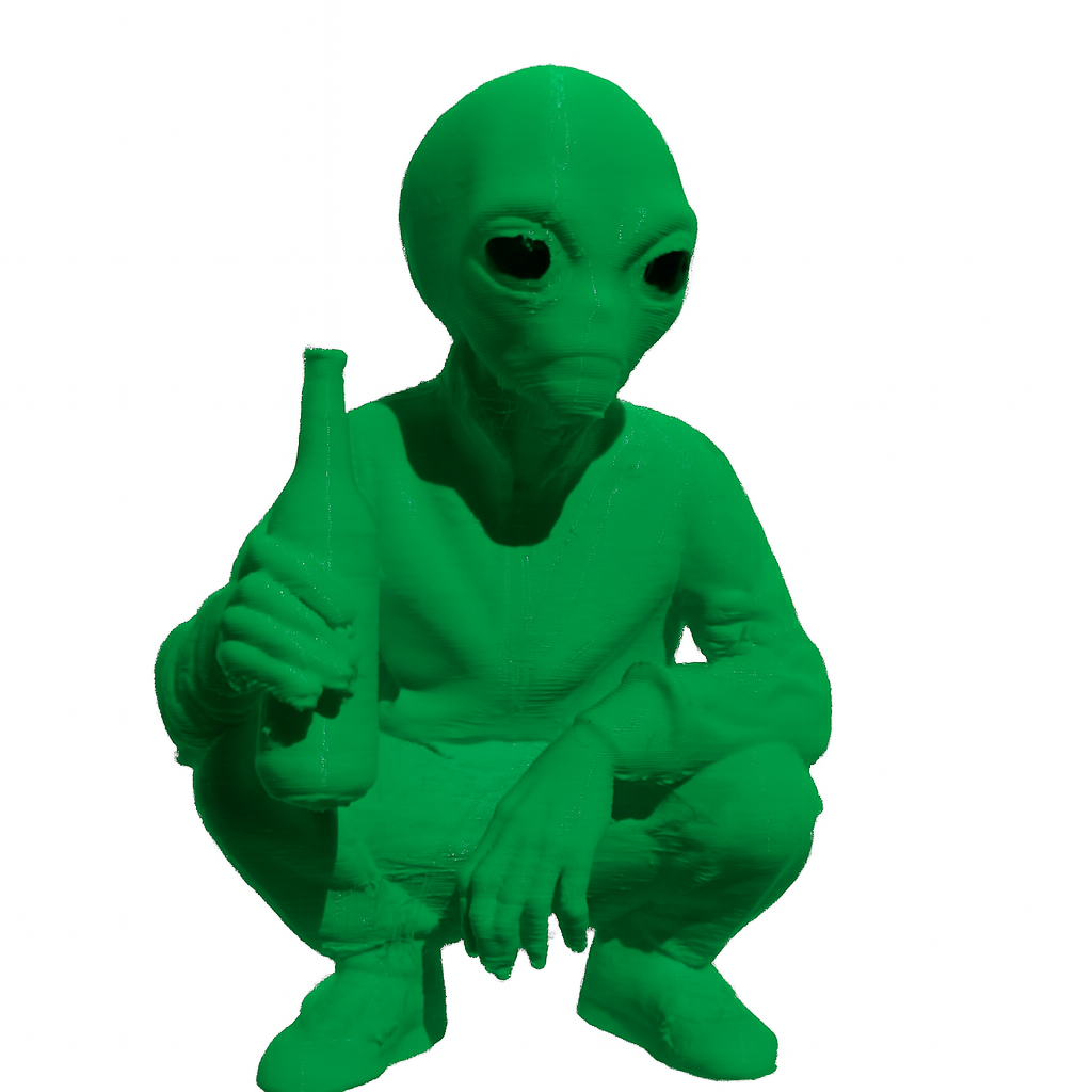 Este alienígena impresso em 3D está em posição de agachamento, segurando uma cerveja com atitude e estilo. Com design divertido e acabamento detalhado, é perfeito para decorar ambientes descontraídos, bares, estúdios ou presentear aquele amigo que ama o universo geek. Uma peça que une humor, arte e personalidade!