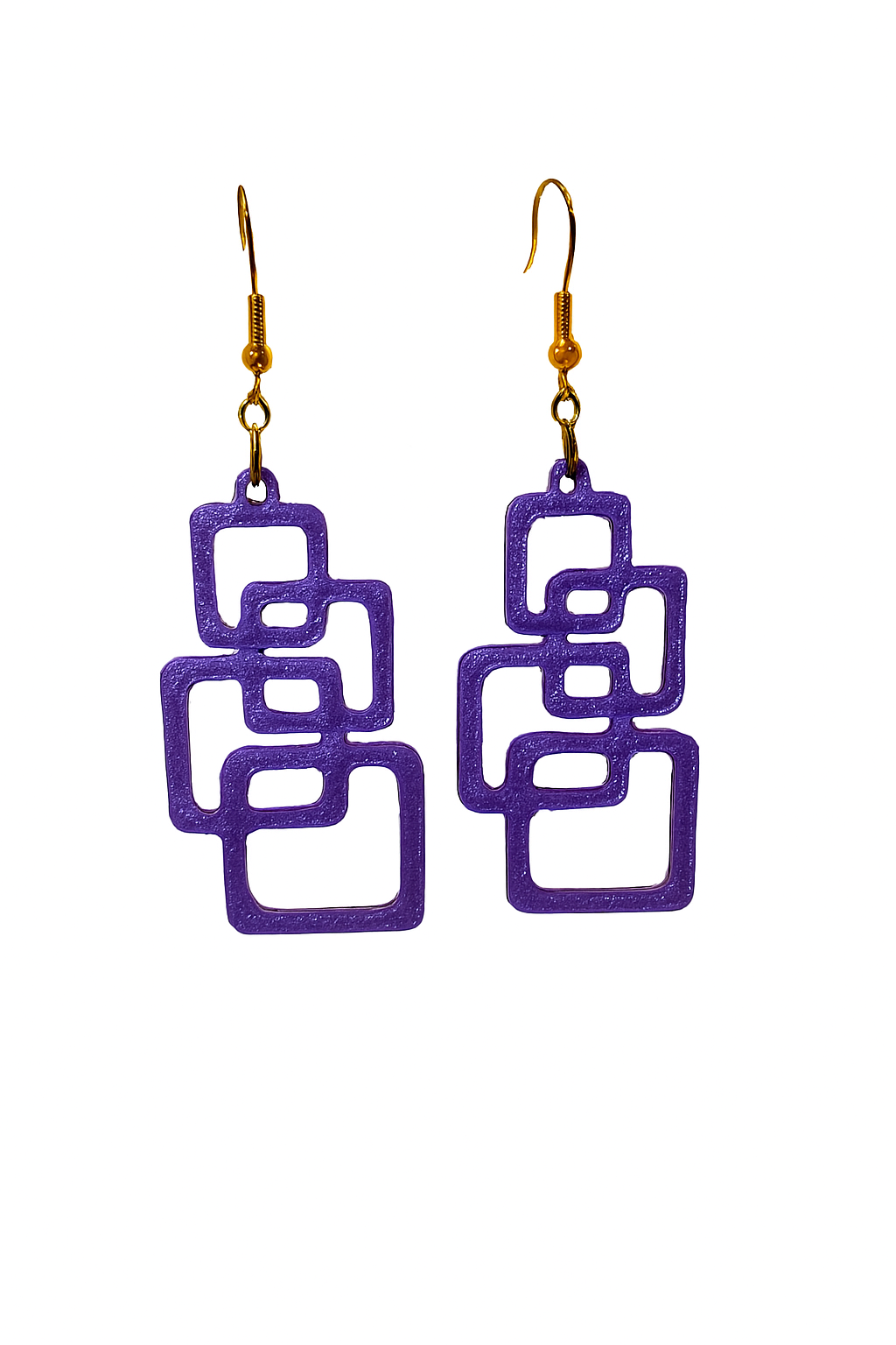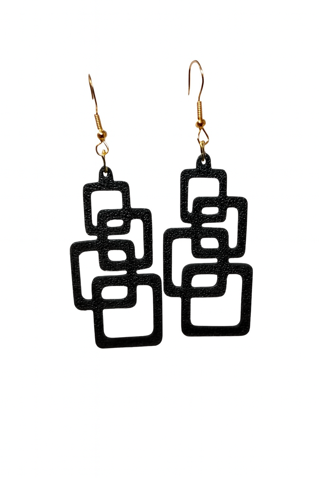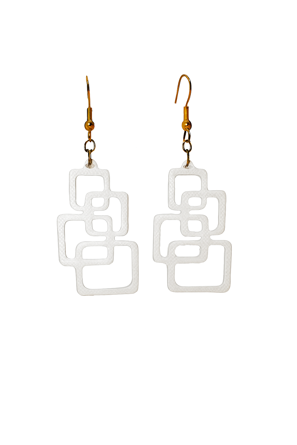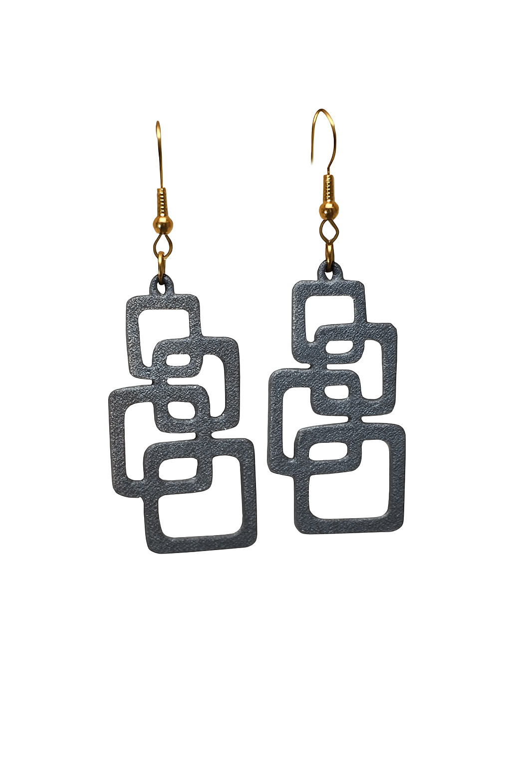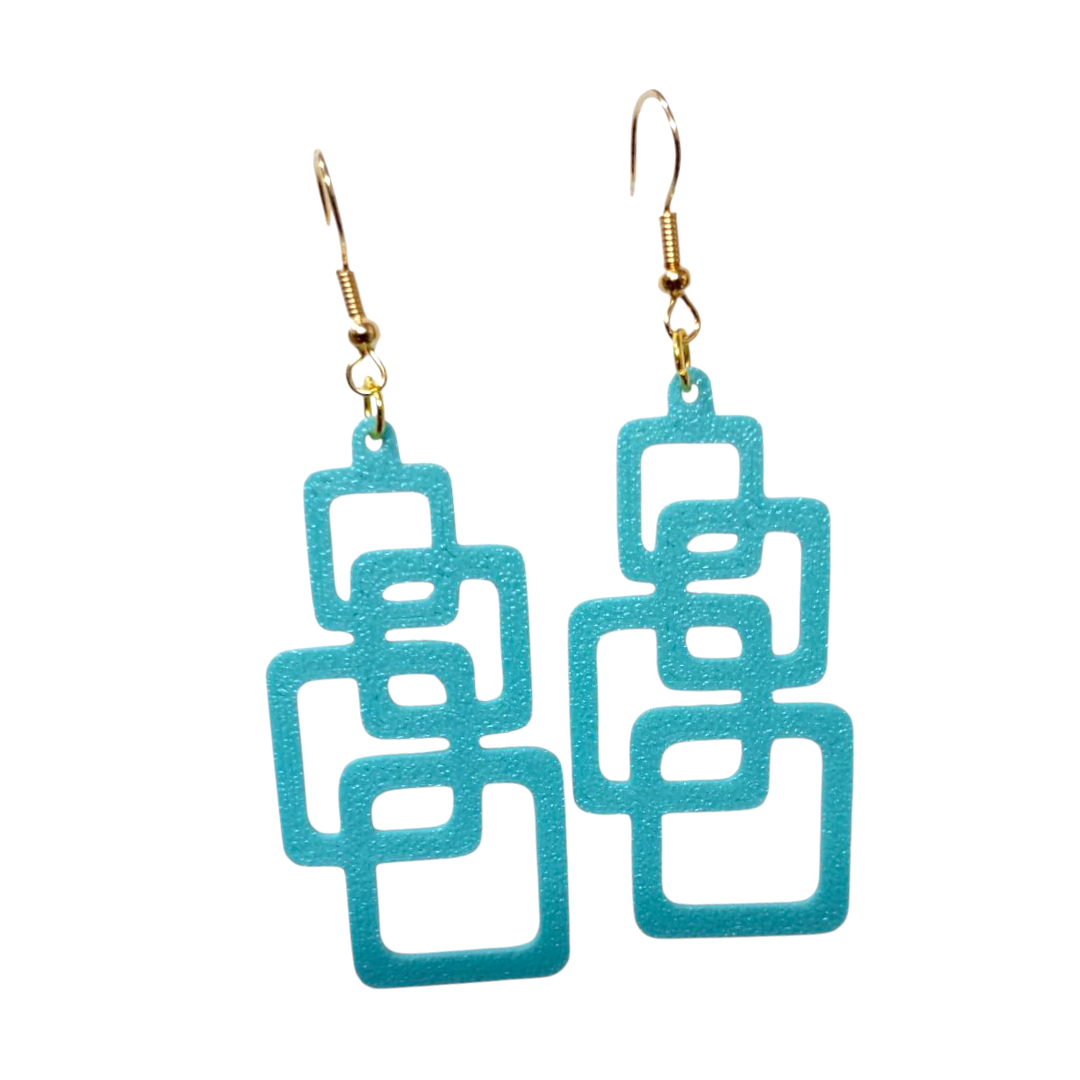 Leve, moderno e feito em impressão 3D. Design exclusivo com quadrados interligados e gancho dourado. Ideal para quem busca estilo e originalidade.