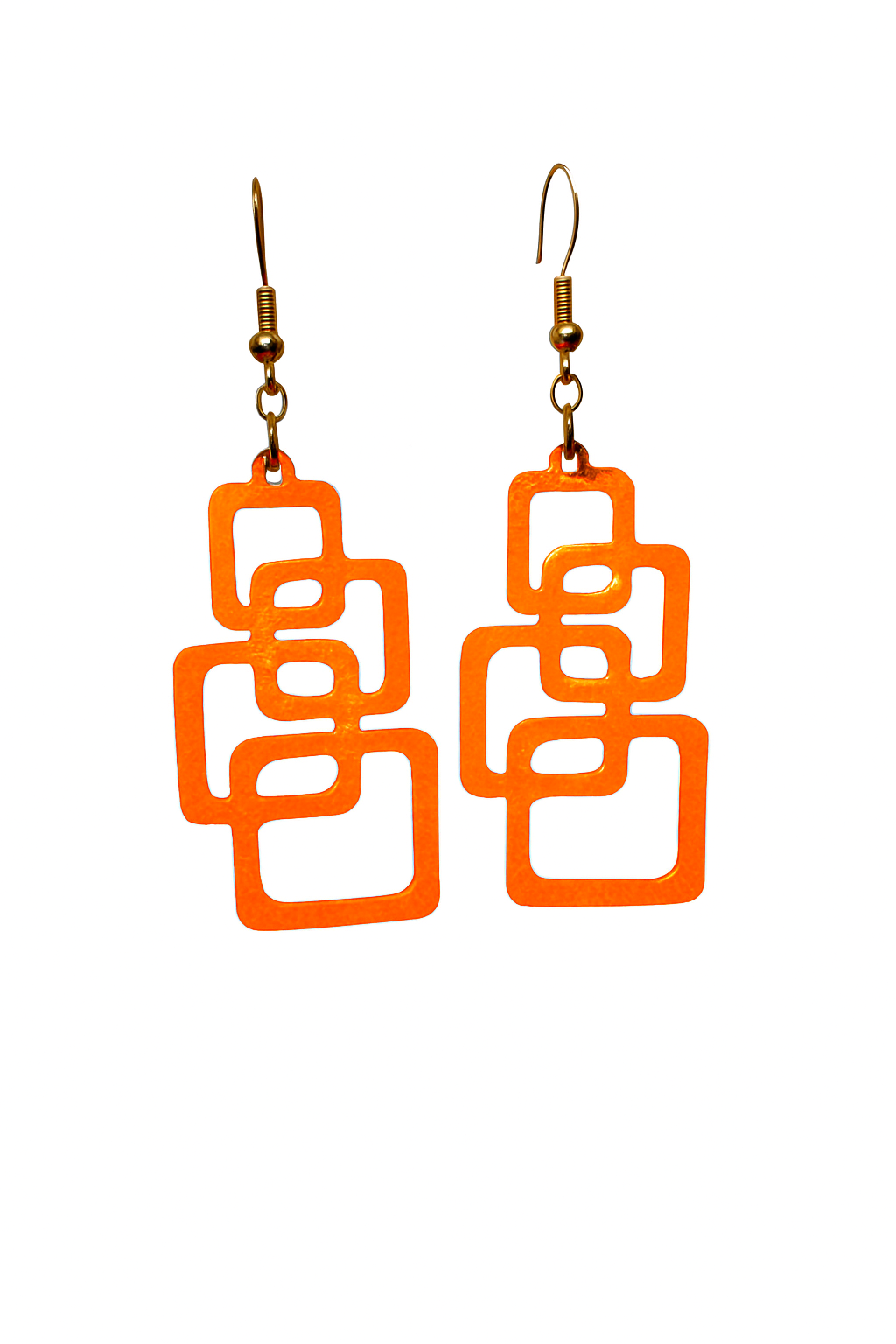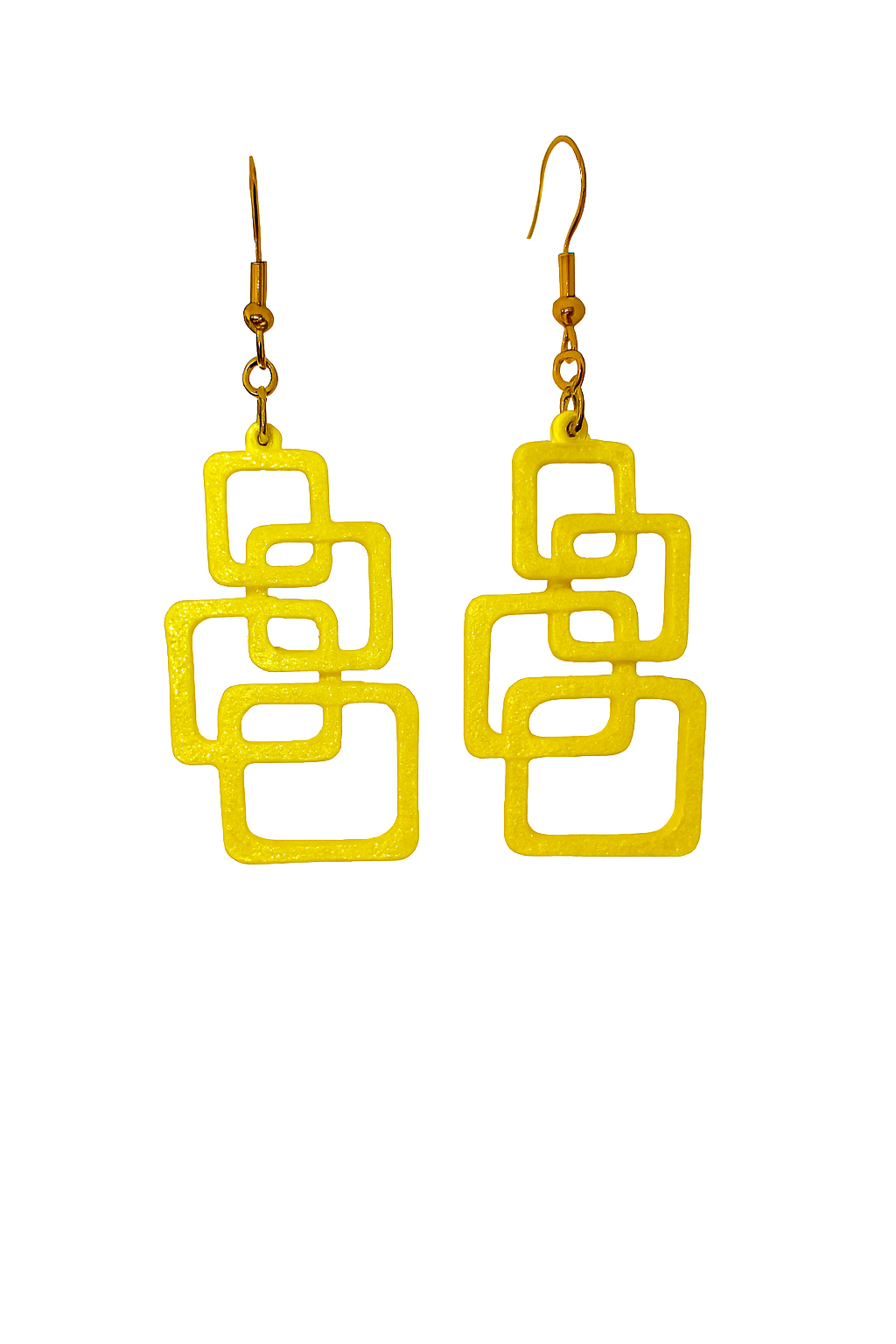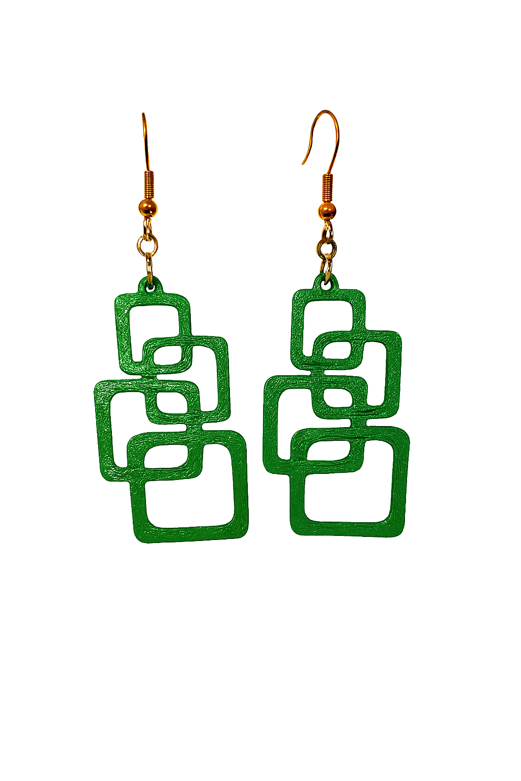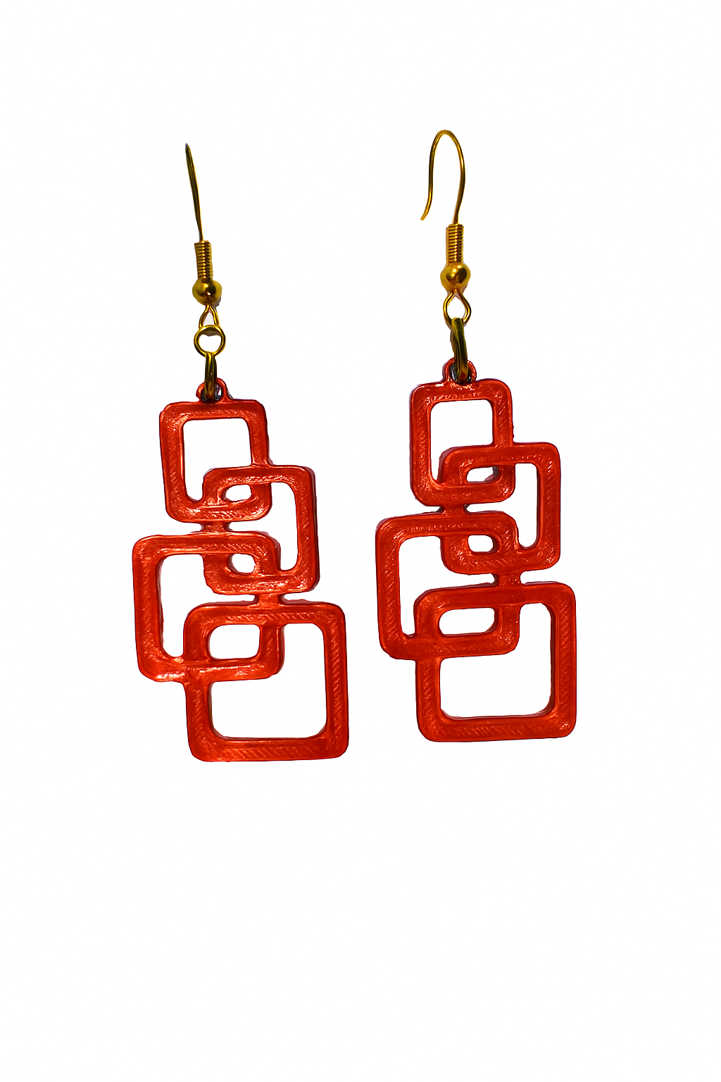 Leve, moderno e feito em impressão 3D. Design exclusivo com quadrados interligados e gancho dourado. Ideal para quem busca estilo e originalidade.